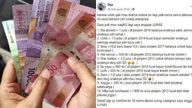 Unggahan seorang pria menjadi Viral di media sosial karena merelakan utang teman-temannya yang mencapai Rp. 16 juta.
